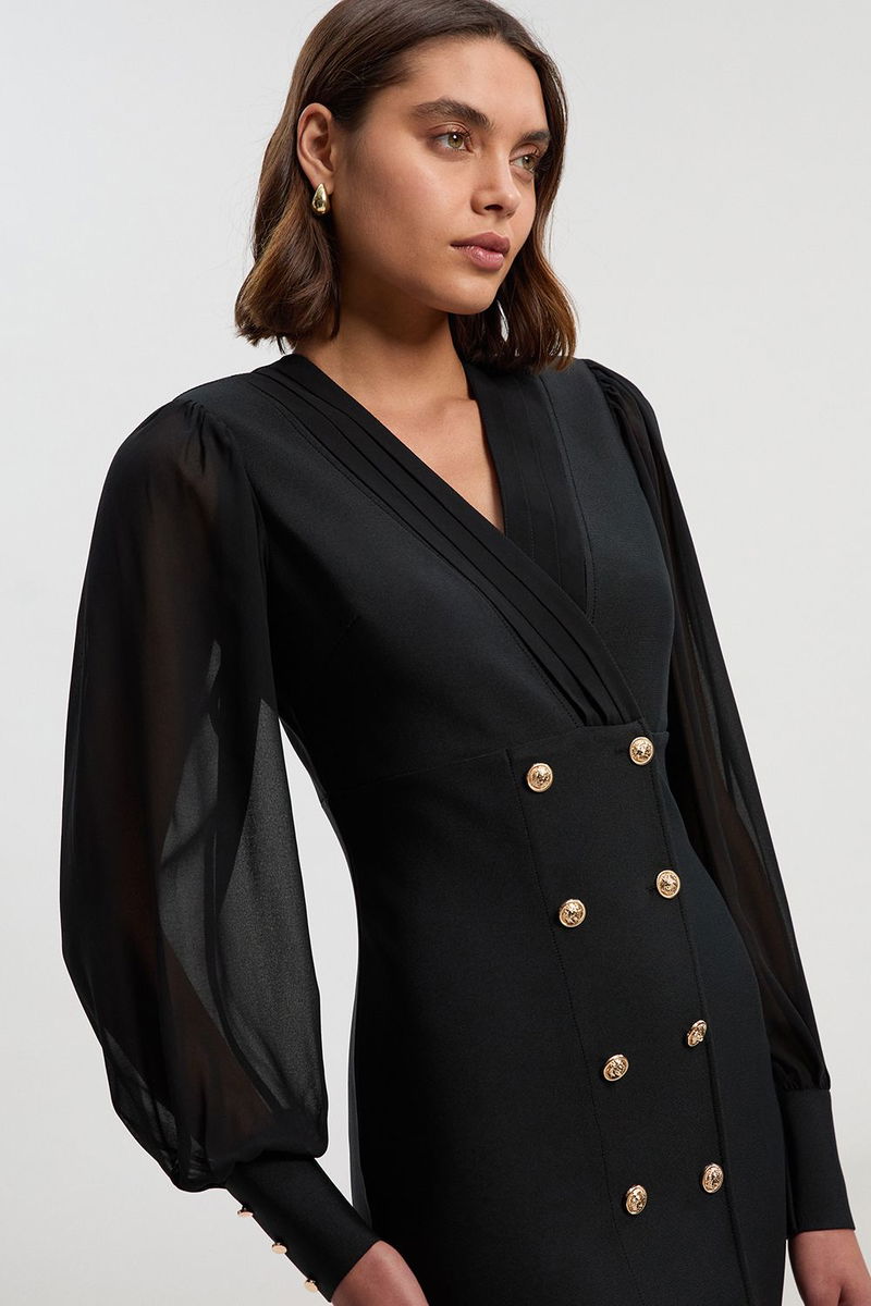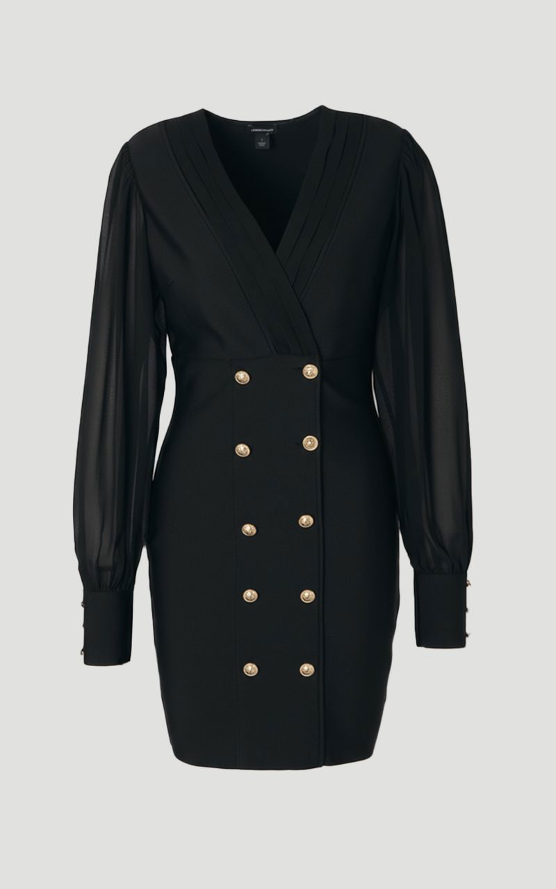 Figure Form Woven Mix Military Button Blazer Knit Mini Dress