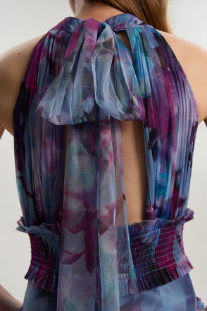 Floral 3D Embellished Halter Tie Neck Woven Maxi Dress