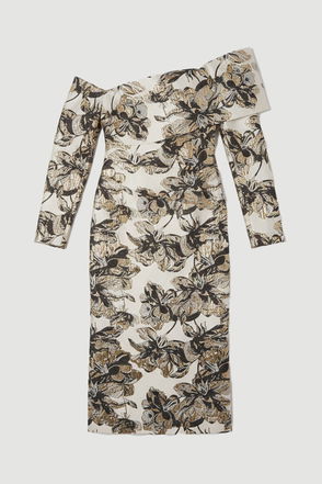 This Karen Millen midi dress is a stunning choice for the sophisticated woman who appreciates contemporary elegance with a touch of glamour. The intricate floral applique adorning the dress creates a captivating visual effect, perfect for making a statement at formal events. The corset-style bodice not only adds structure but also accentuates your silhouette, while the sweetheart neckline adds a romantic flair. For a polished look, pair with strappy heels and a clutch bag.