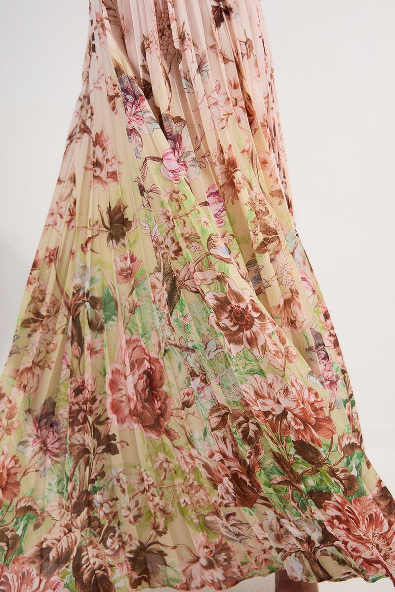 Floral Pleated Crinkle Cut Out Woven Maxi Dress
