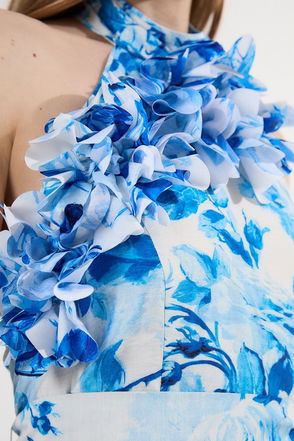 Floral Print & Applique Halter Neck Belted Woven Maxi Dress