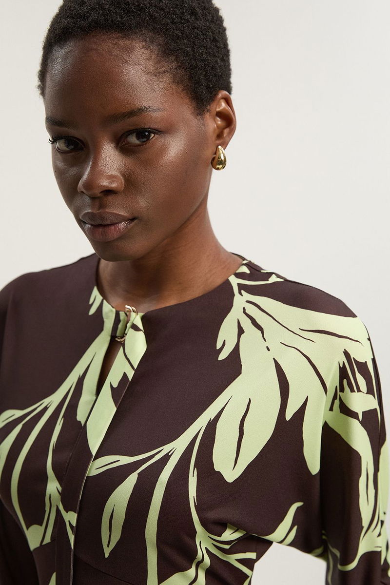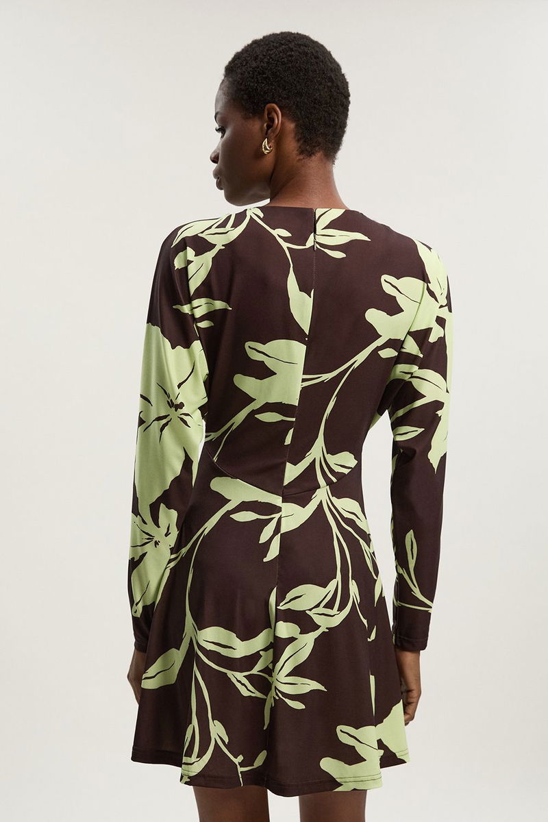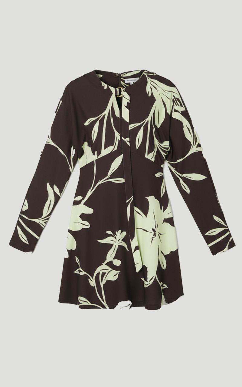 Floral Print Keyhole Tie Detail Crepe Long Sleeve Mini Dress