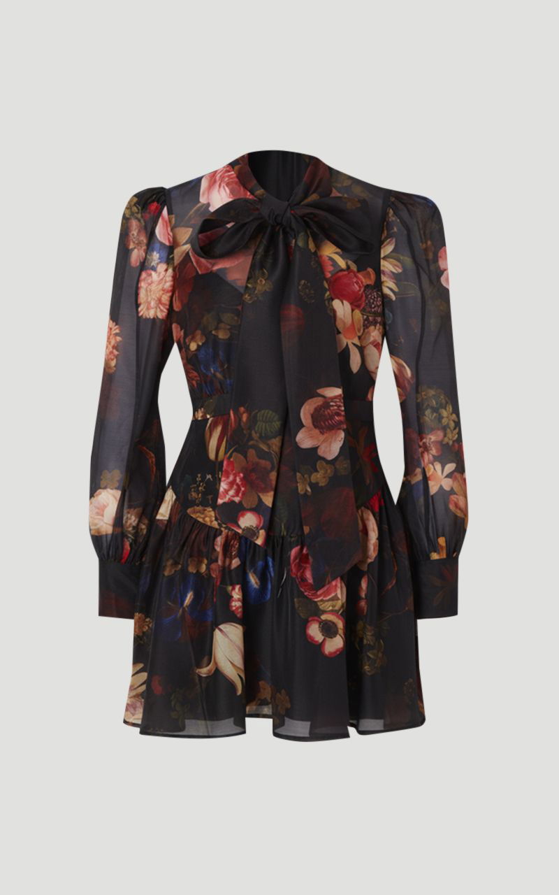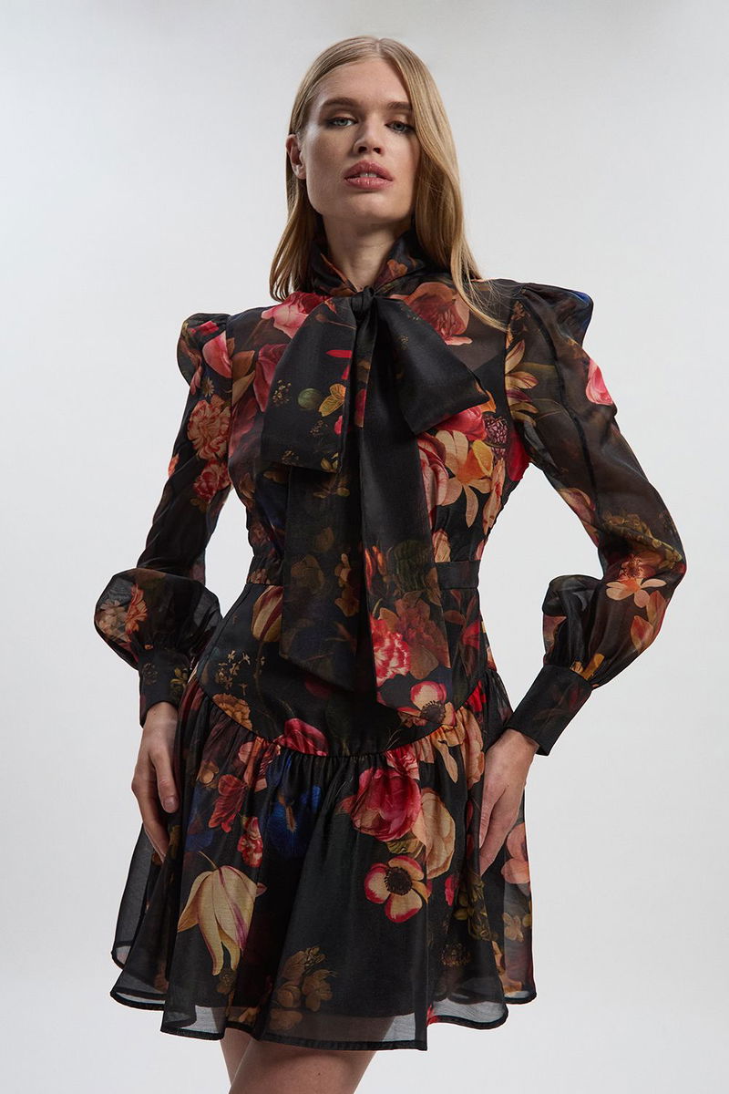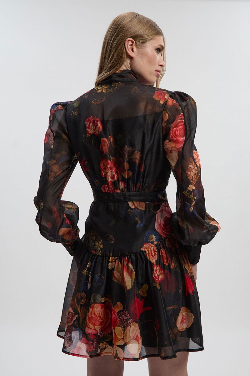 Floral Print Organdie High Neck Woven Mini Dress