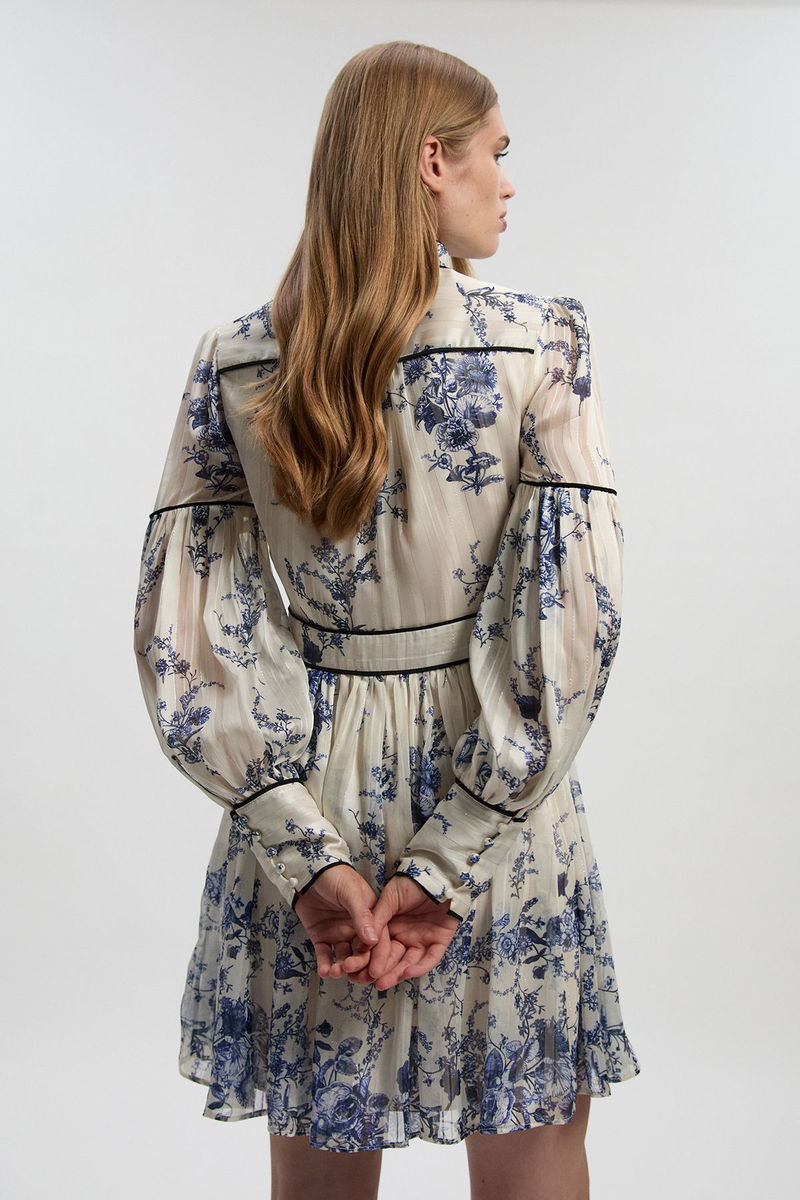 Floral Print Woven Balloon Sleeve Mini Dress