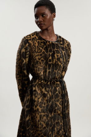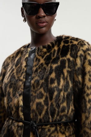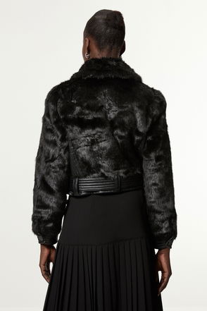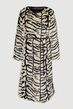 It’s a fact, you can never have too many jackets. Ready for cooler days ahead, this faux-fur number features a high funnel neck, hook and eye fastening and long sleeves.