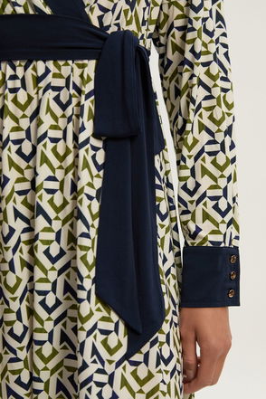 Wondering what to wear for the 9-5? Elevate office dressing and let your print do all the work. This dress features an all-over geo-print, round neck, long sleeves and comes in a knee length.