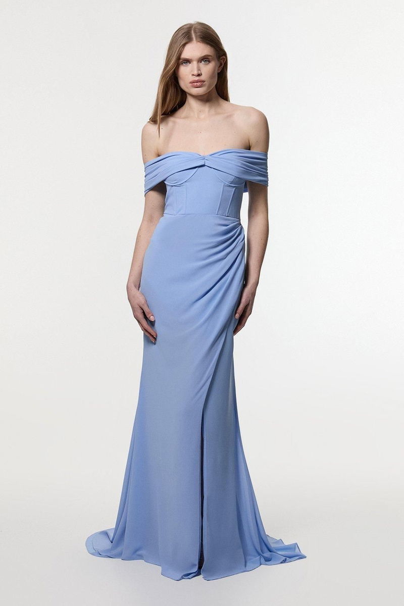 Georgette Bustier Bandeau Drama Woven Maxi Dress