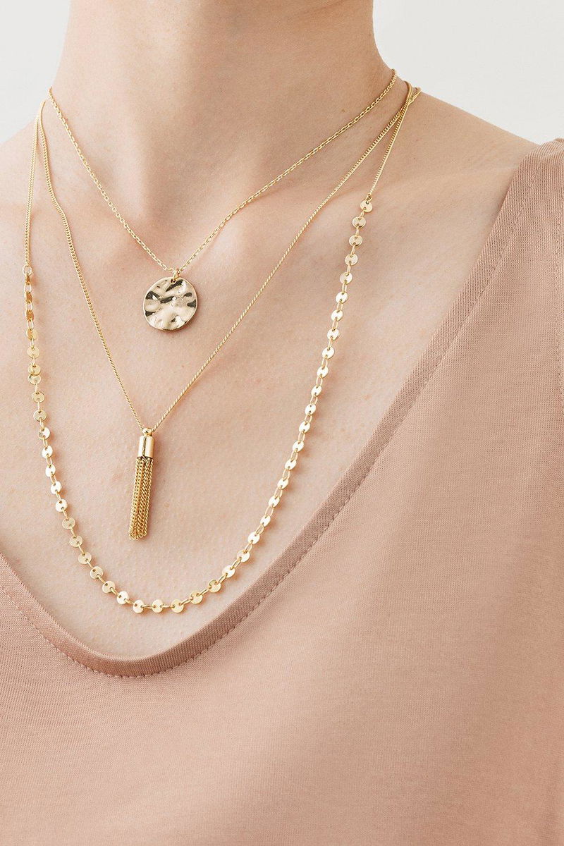 Designed with a trio of delicate chains, this necklace is an easy-to-wear and versatile addition to any jewellery collection. Dress up a casual scoop neck midi dress by giving it an elegant twist.