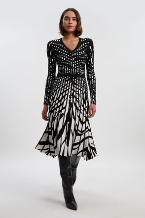 Trick the eye with a monochrome dress. Creating a shapelier-looking figure thanks to the expertly placed print, this piece also is undeniably flattering thanks to its smoothing fitted knit.