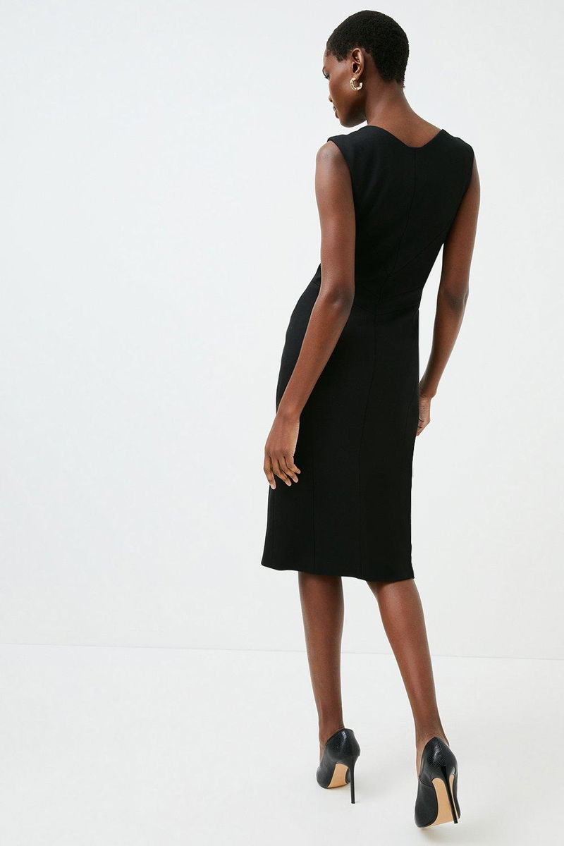 Defined by its full-length silver zip, this Italian structured jersey pencil dress makes a decidedly sporty addition to your after-dark repertoire. Detailed with a notched neckline and sleek, sleeveless fit, it skims the curves subtly for a flattering finish. Elevate it with sky-high heels and slicked-back hair.