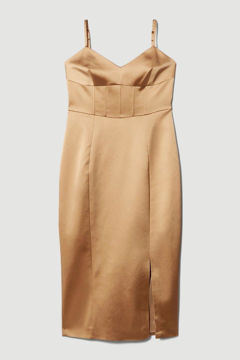 Italian Structured Satin Corset Detail Pencil Midi Dress.