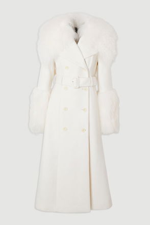 Crafted using a sumptuous Italian wool blend, this coat embodies luxury. Cut with a forever-flattering cocoon shape, the piece features a seam detail and a hidden button front for an ultta-streamlined appearance. Beautifully finished with a glossy buckle belt and matching rivets, it masters the art of easy elegance.