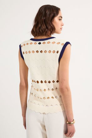 Tie up your separate styling with this jacquard top. Designed to elevate the simplest of outfits, this sleeveless knit features an eye-catching jacquard print and lace detail with glossy metalwork for a luxe finish.