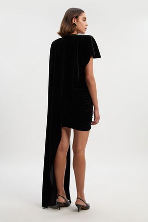 Cut a striking silhouette for seasons to come in this form-fitting dress. Crafted from stretch jersey accented with contemporary draped detailing, its textured seams have a modern sensibility. Long sleeves and a mini hemline lend this sultry style endless after-dark appeal.