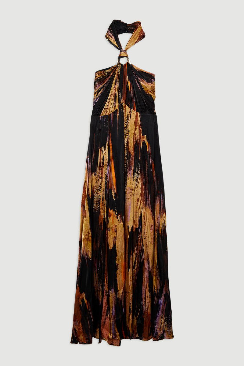 Marble Devour Halter Neck Maxi Dress