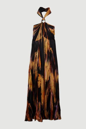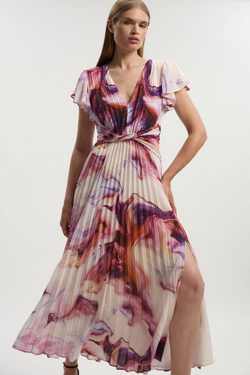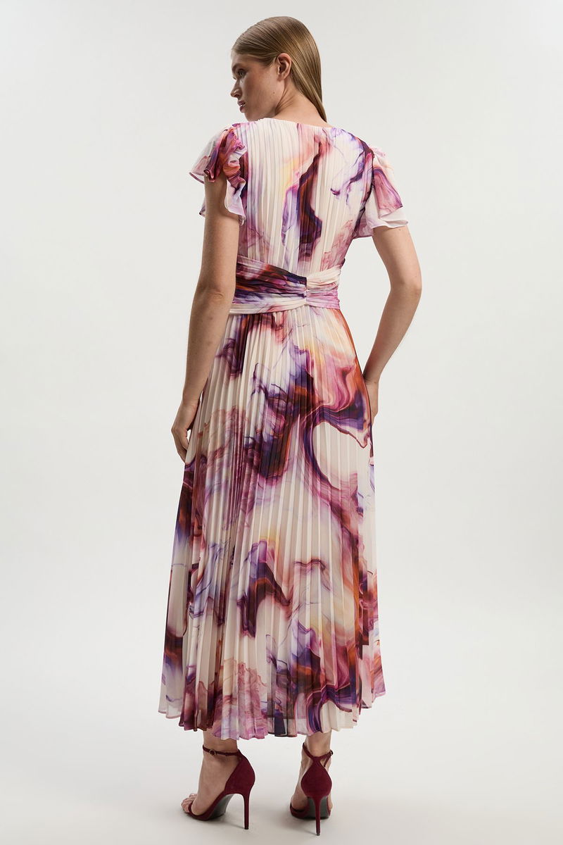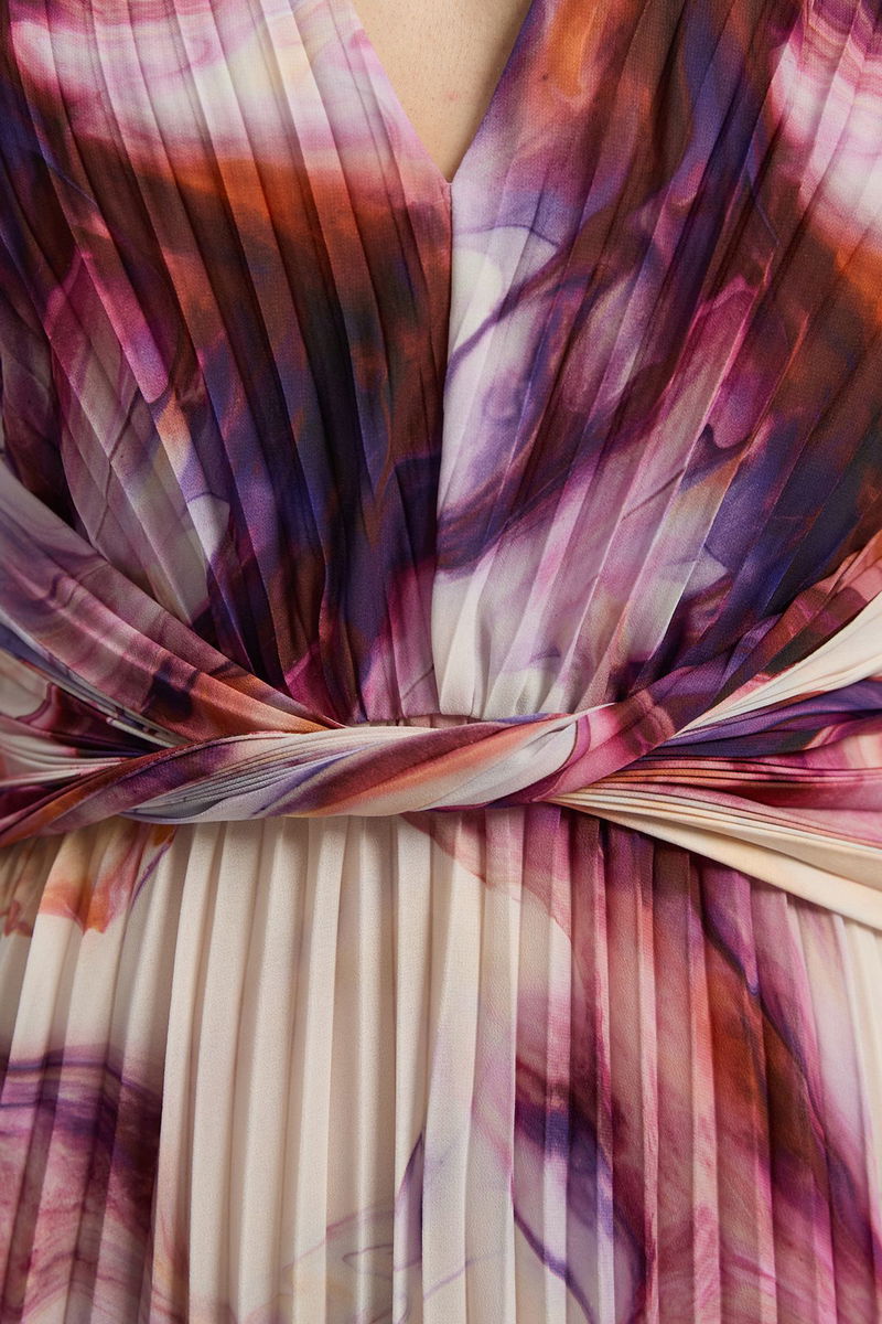 Marble Soft Pleated V Neck Woven Maxi Dress