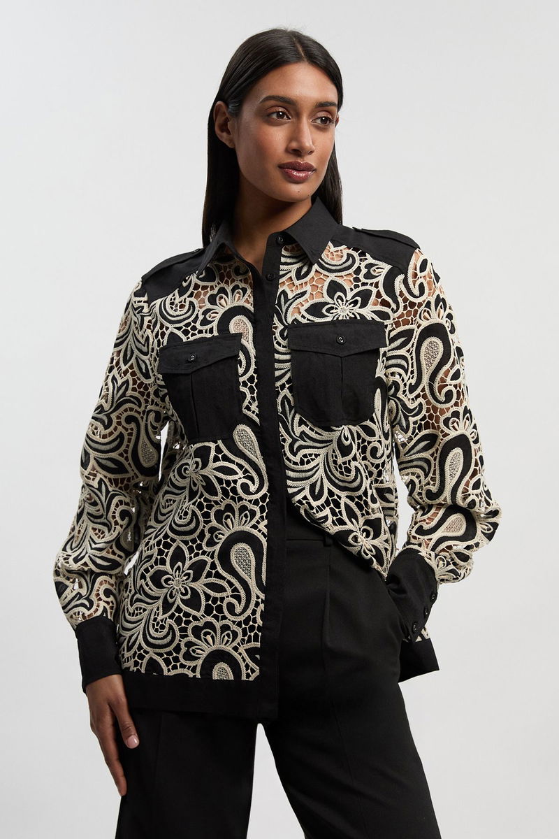 Mono Cutwork Pocket Front Woven Shirt