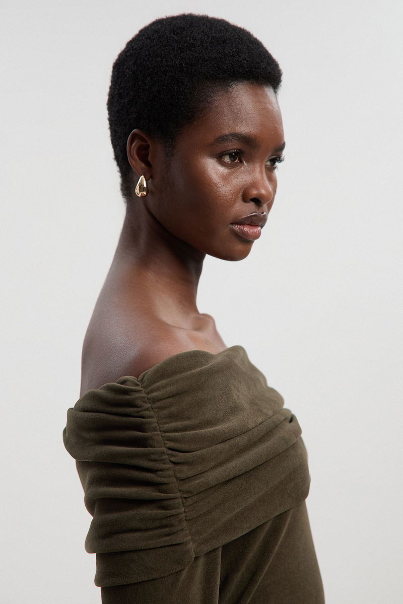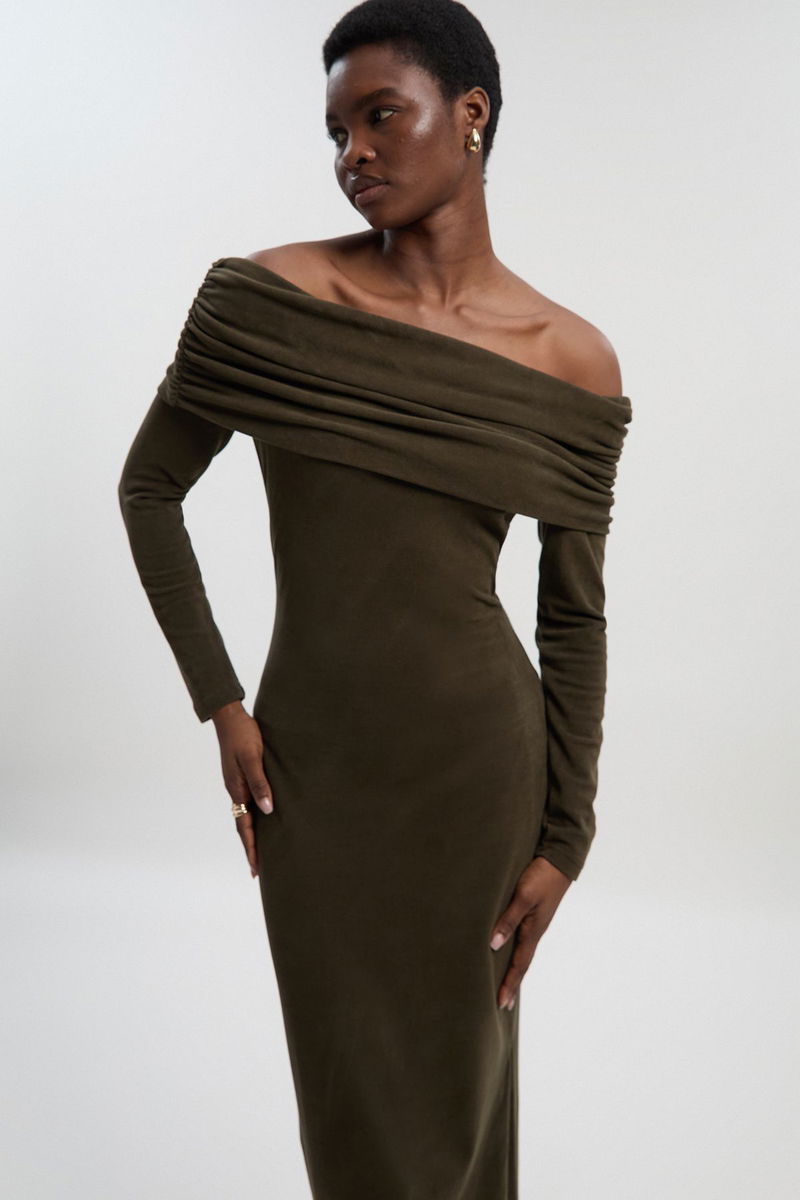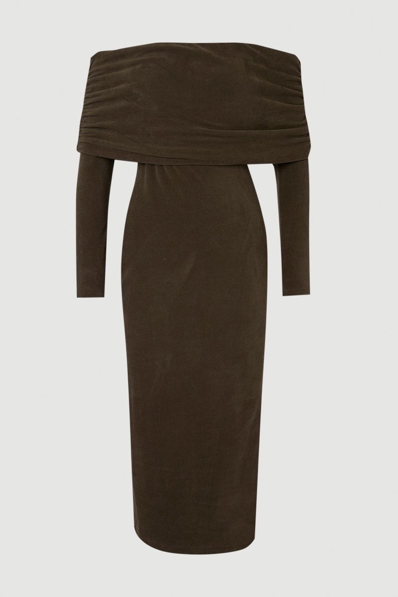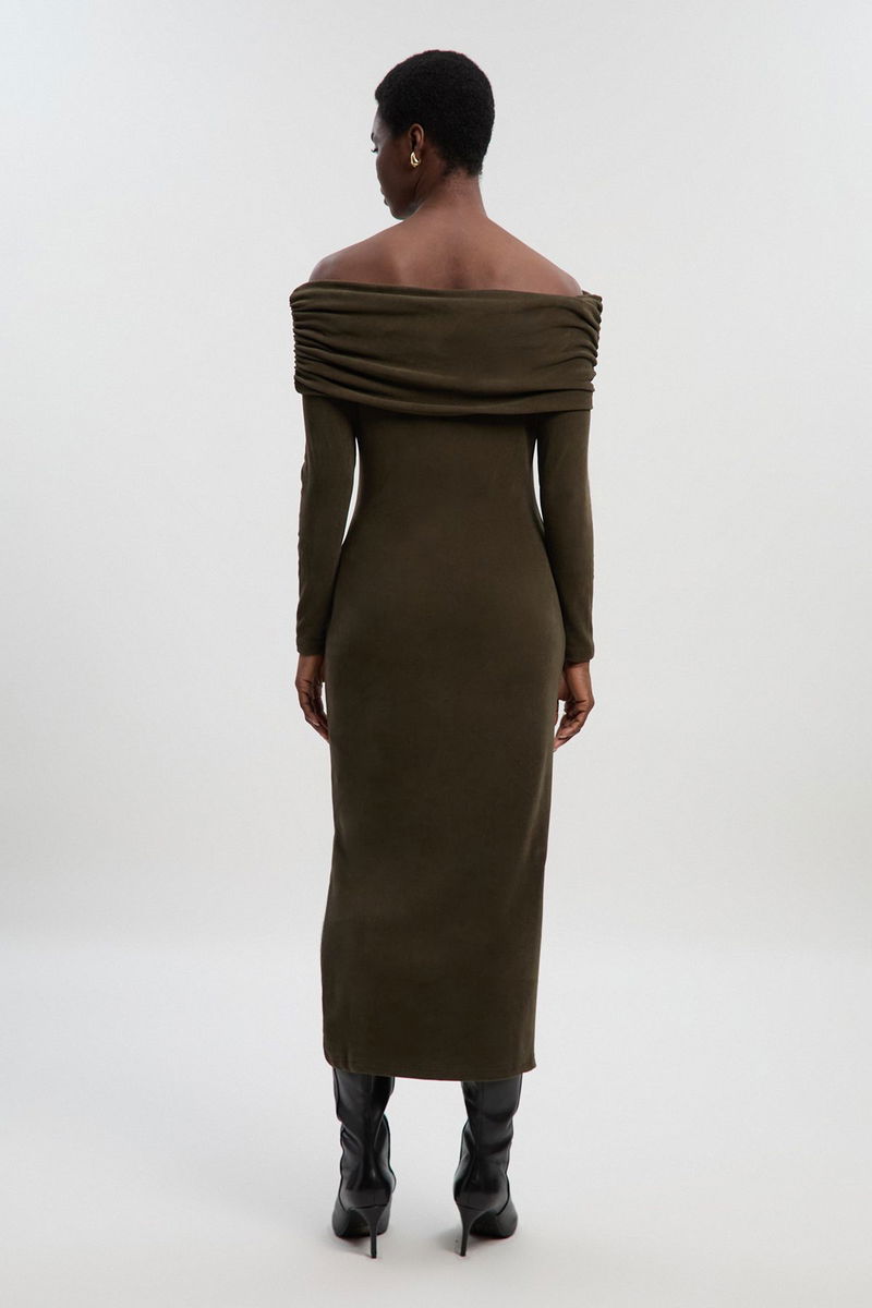 Off The Shoulder Brushed Textured Jersey Midi Dress