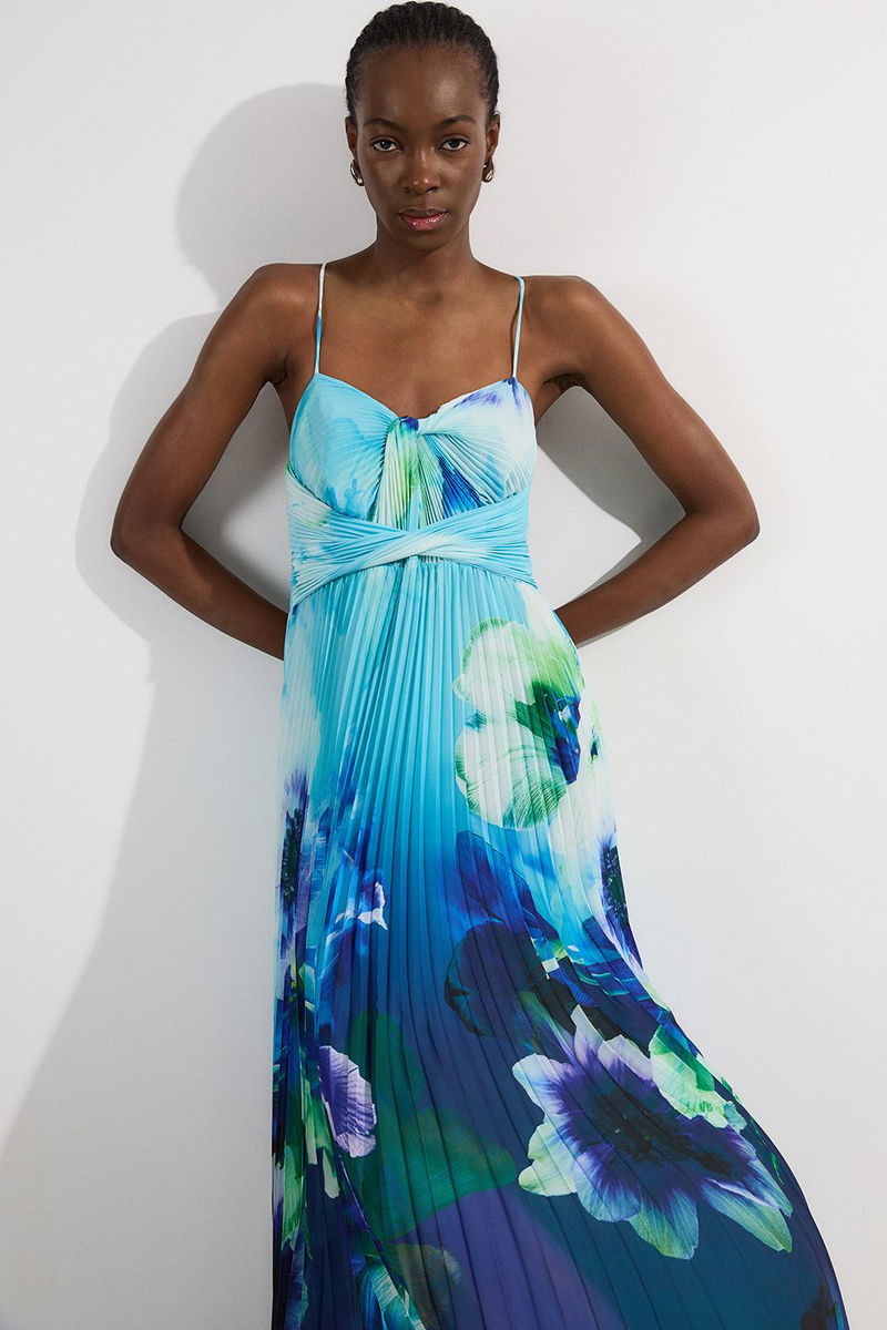 Ombre Floral Soft Pleated Woven Strappy Maxi Dress