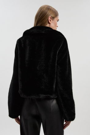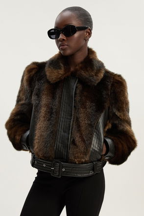 Elevate your outer layers with a classic jacket, with a comfortable, wide fit, and a statement, thick faux fur fabric. The contrasting stripe pattern is certain to catch eyes wherever you step. Style it with anything, from a skirt, to tailored trousers, to jeans for an elevated look that will take you seamlessly from day to night.