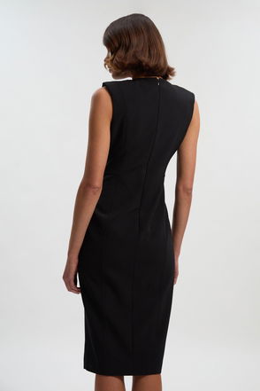 This dress is something special. Your ultimate confidence booster, the piece is expertly crafted with angled panels for the illusion of a more defined figure. Plus, it comes complete with puffed shoulders, square neckline, front exposed zip and a back vent.
