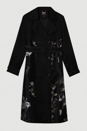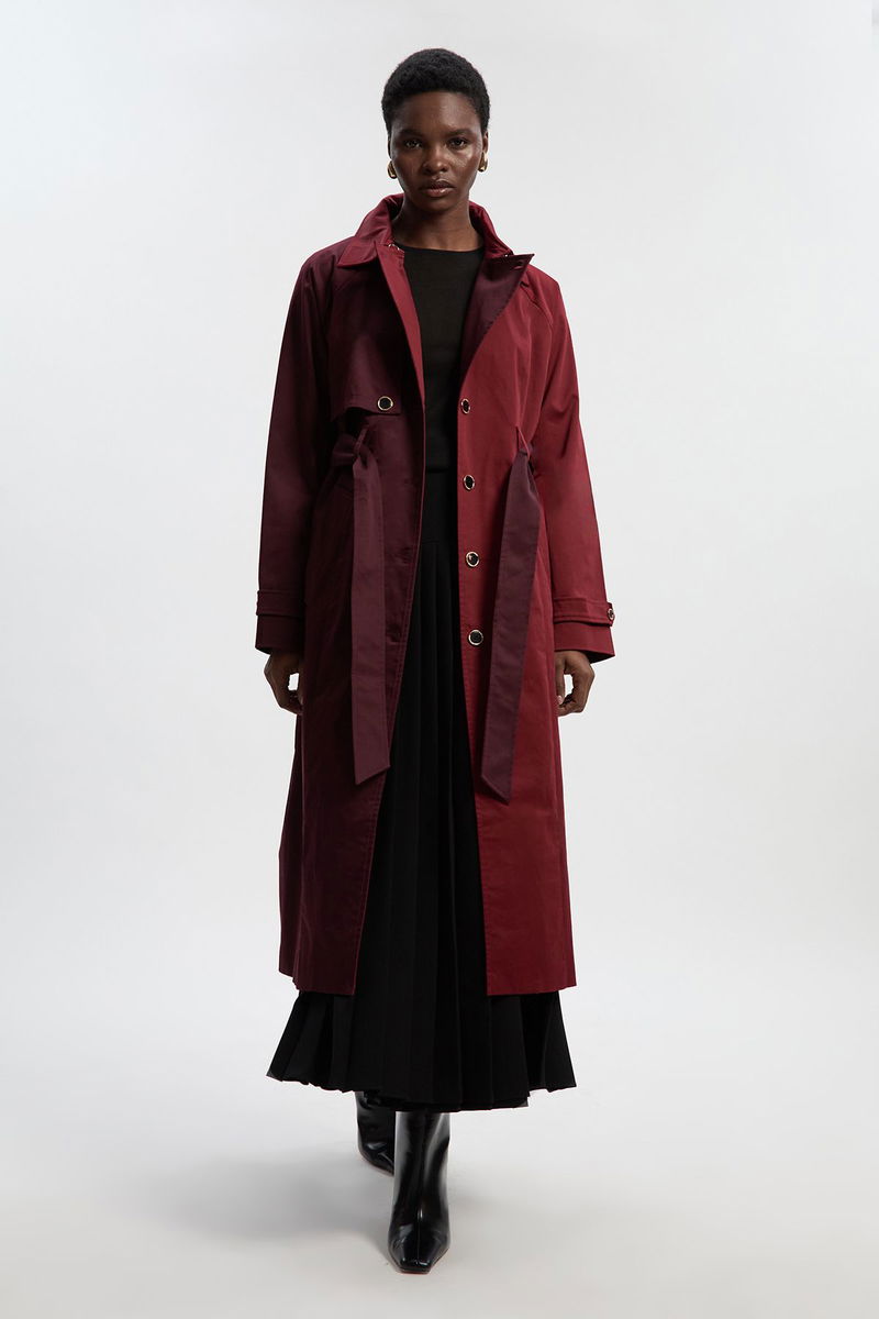 Petite Colour Block Belted Tailored Trench Coat