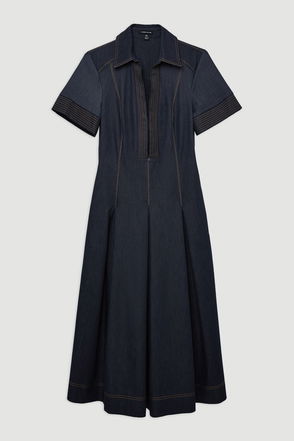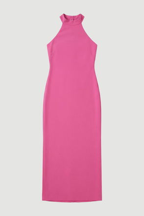 Crafted with refined elegance, this dress sculpts the silhouette with compact stretch for a tailored fit. Featuring a drop shoulder for a contemporary touch, while a straight midi skirt is cut by a side split. Pair with barely there heels for timeless occasionwear.