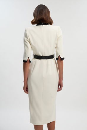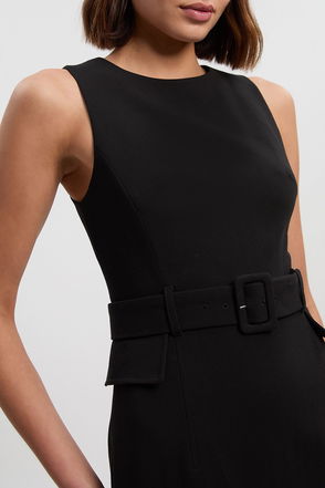 Petite Compact Essential Belted Tailored Full Midi Dress