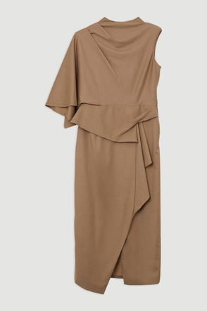 Petite Compact Stretch Asymmetric Collar Tailored Pencil Maxi Dress