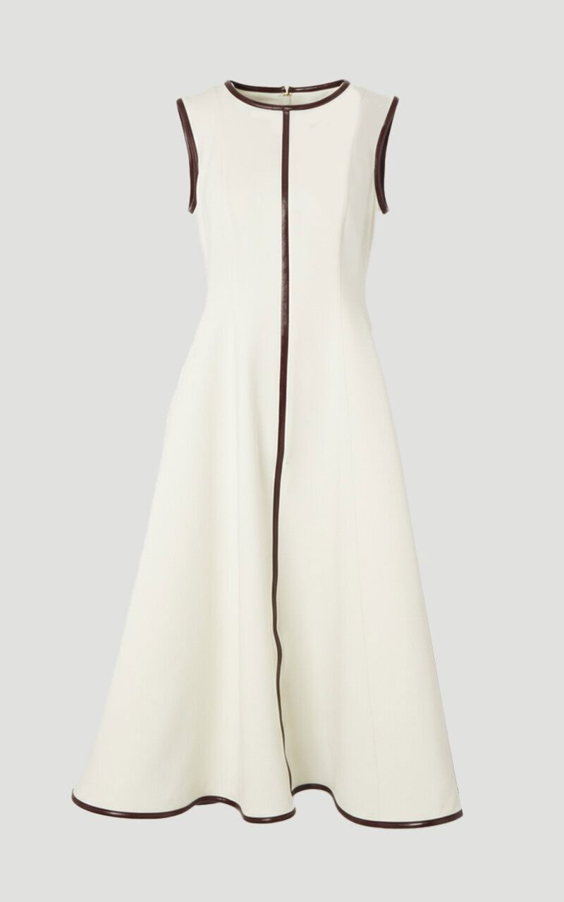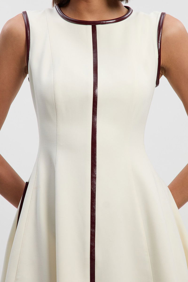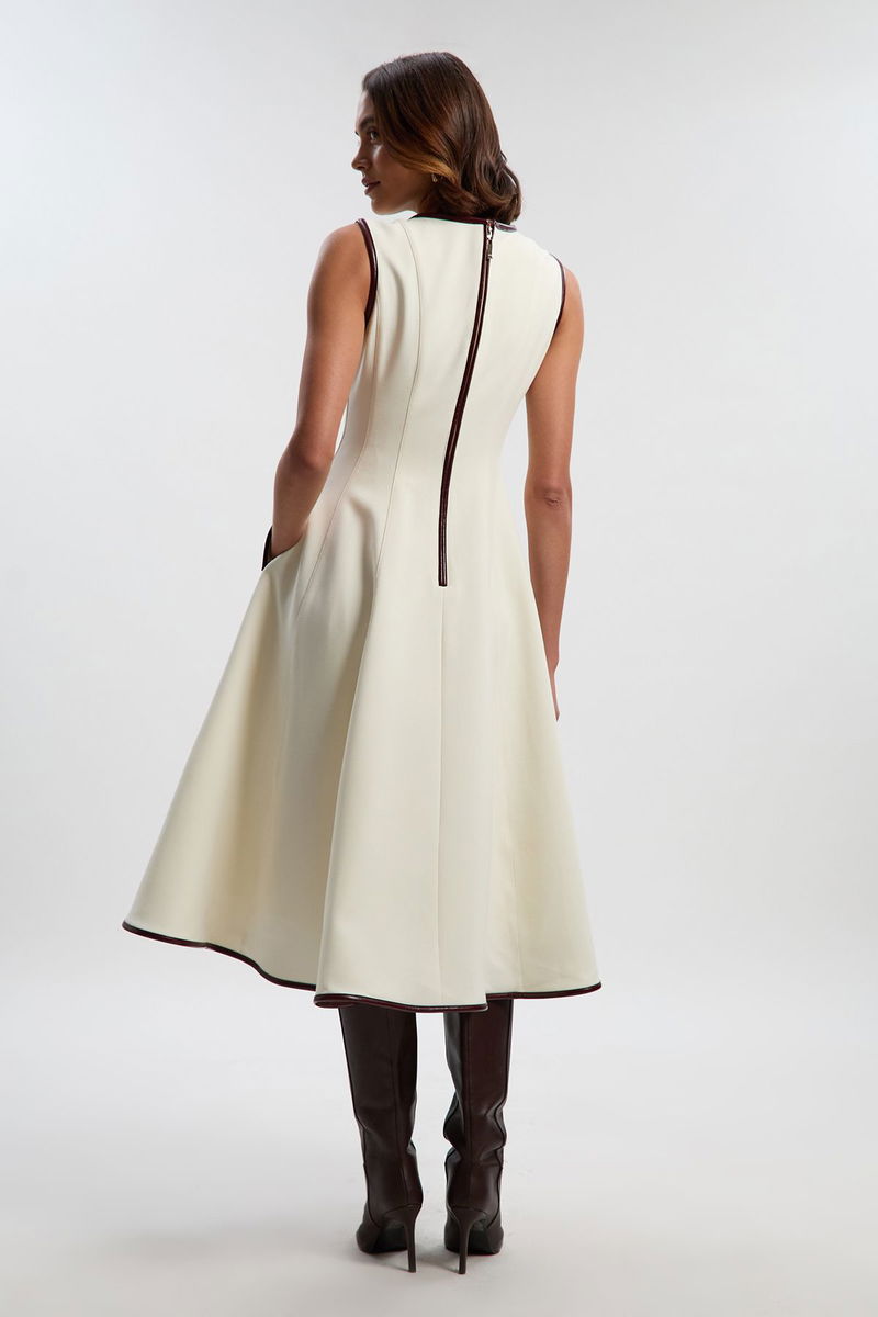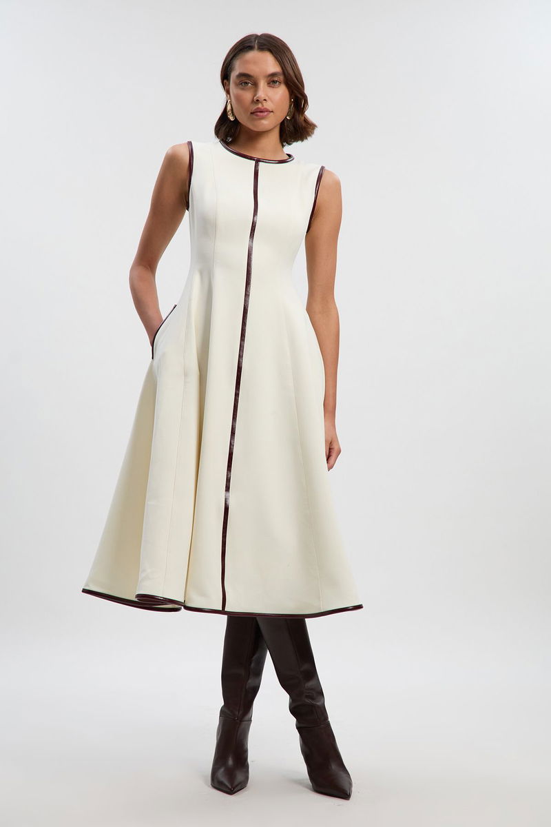 Petite Compact Stretch Pu Mix Sleeveless Full Skirted Tailored Midi Dress