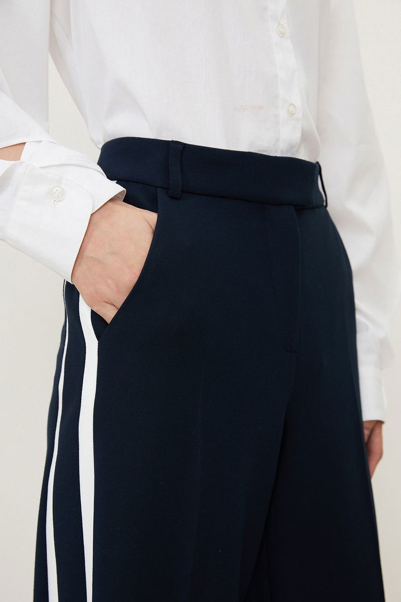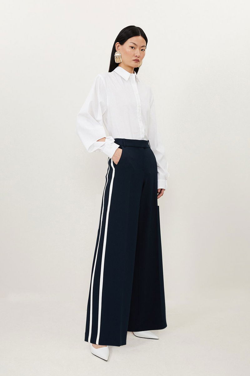 Petite Compact Stretch Wide Leg Tipped Tailored Trousers