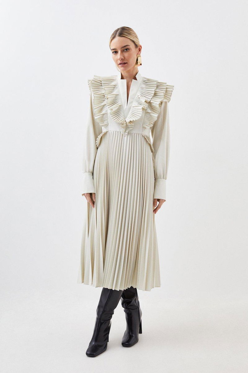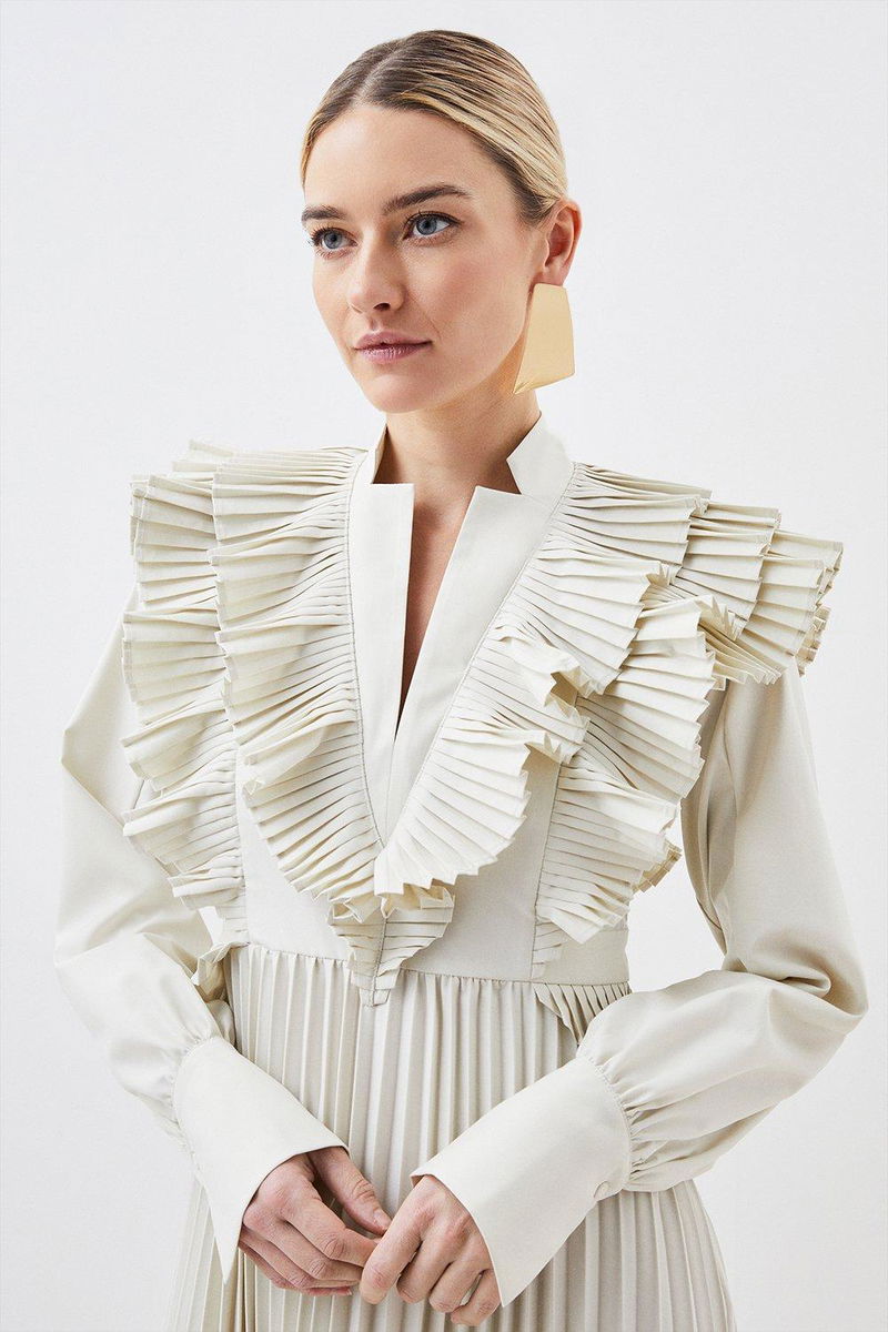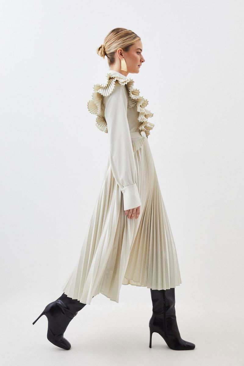 Embrace timeless elegance with this exquisite cotton pleated dress. Crafted from breathable and lightweight cotton, this dress exudes sophistication and effortless style. The intricate pleated detailing throughout the bodice and skirt adds a touch of drama and dimension, while the midi length ensures a polished and refined look.