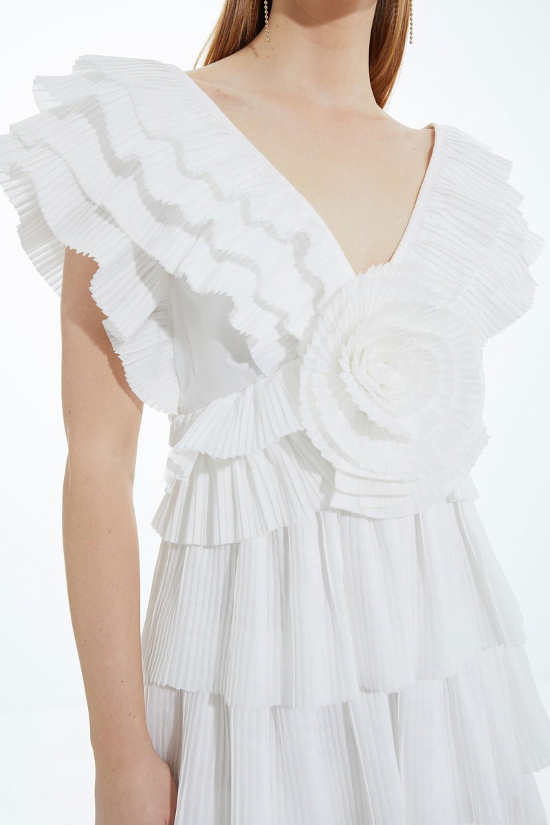 Bring in the summer with our petite mini dress, made in lightweight voile fabric, with a statement, layered design, with pleat detailing and a three dimensional rosette accent at the bust. Style it with sandals or strappy heels for an occasion look ideal for holiday evenings and party nights.