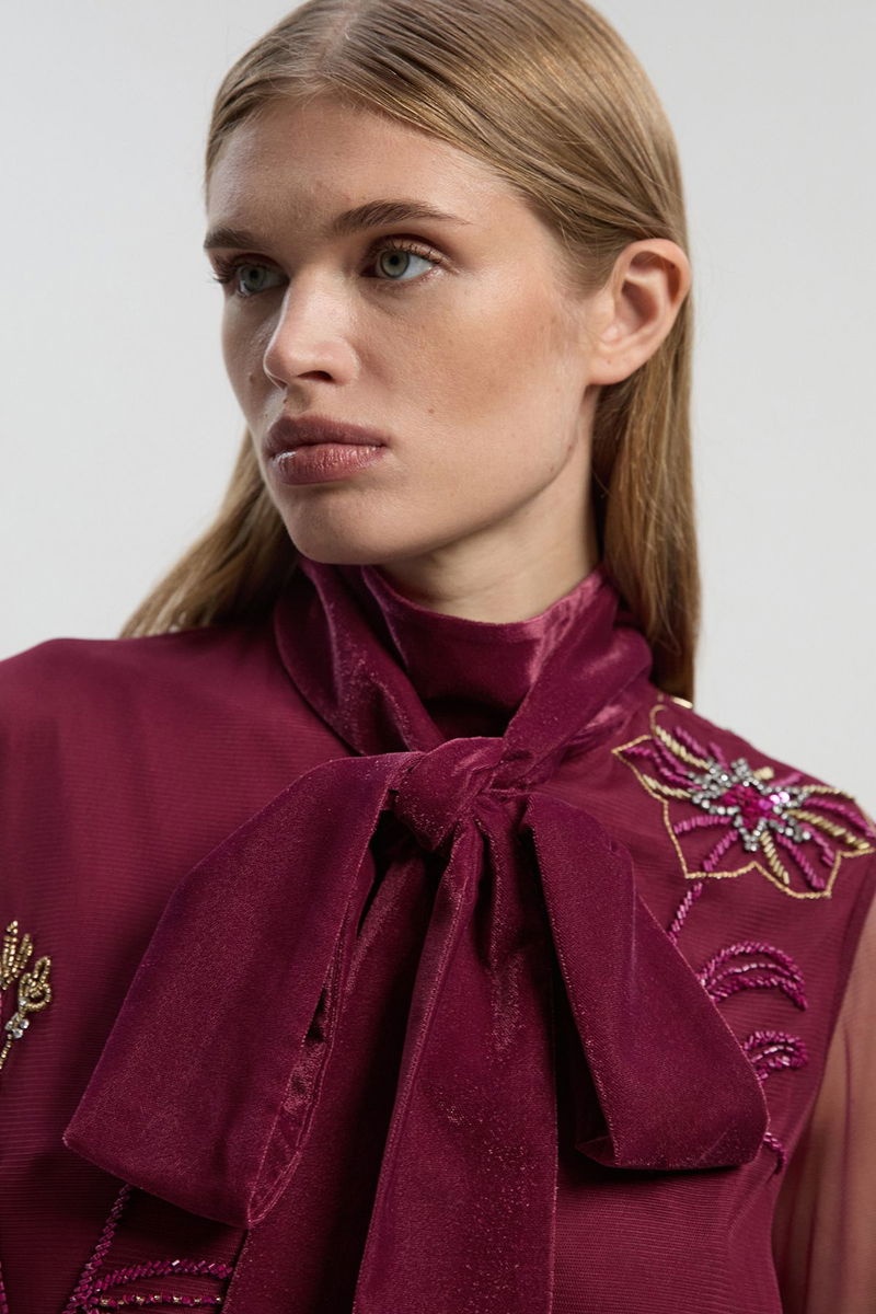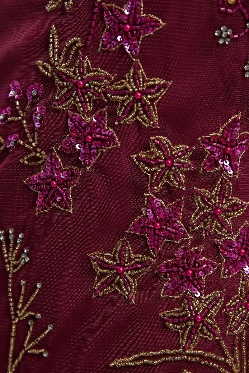 Petite Floral Applique Embellished Organdie Woven Mini Dress