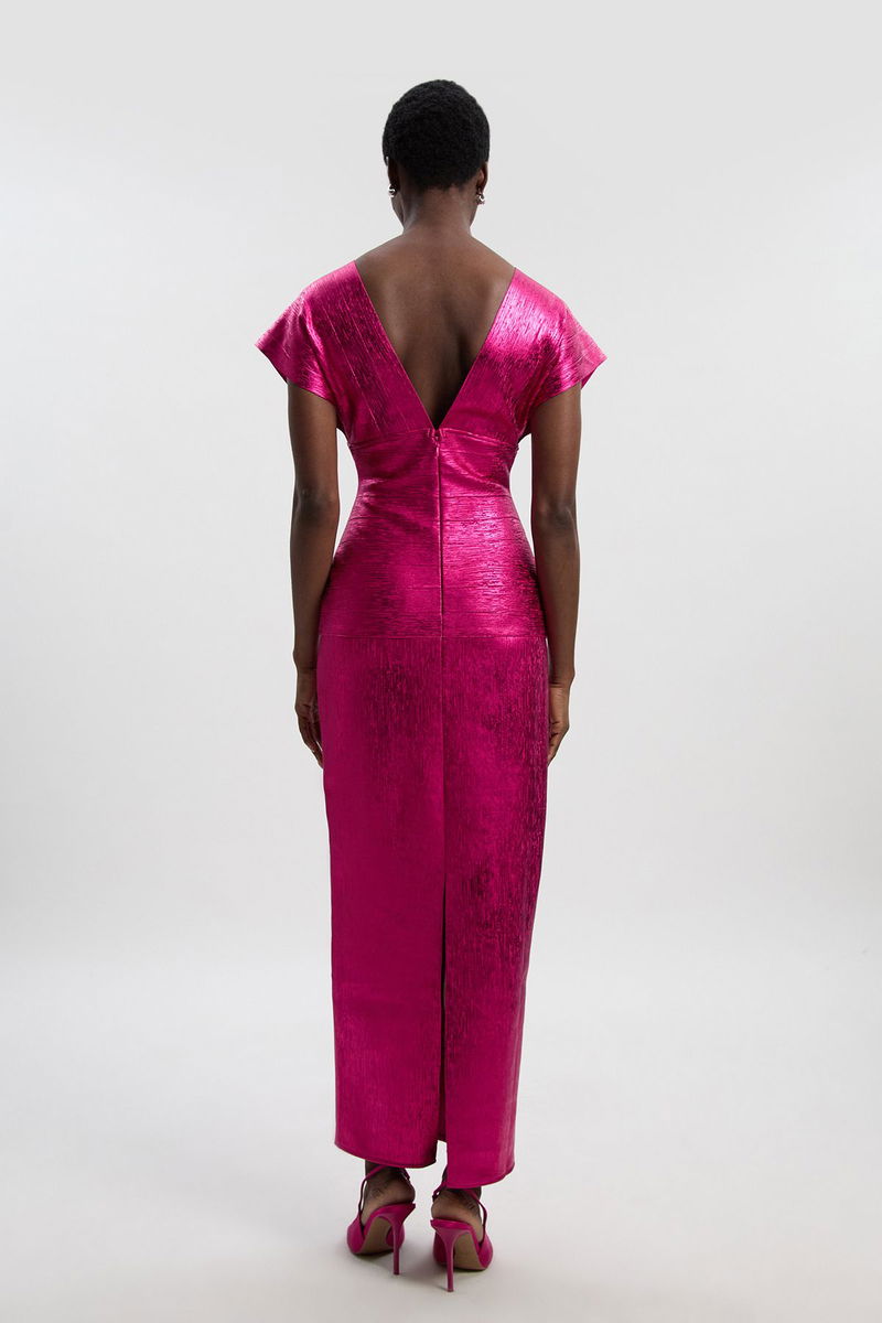 Petite Foil Metallic Figure Form Bandage Angel Sleeve Knit Maxi Dress