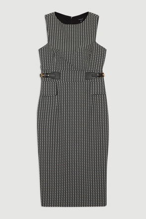 Petite Jacquard Tab Waist Detail Tailored Midi Dress