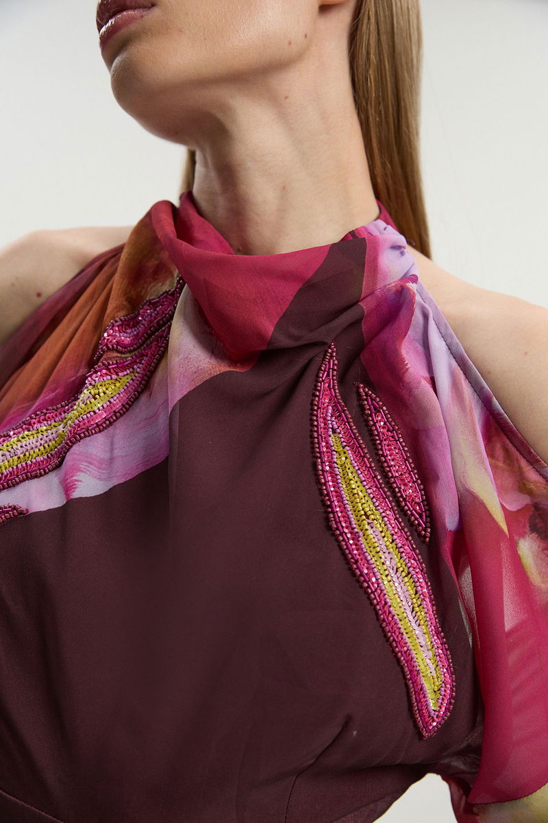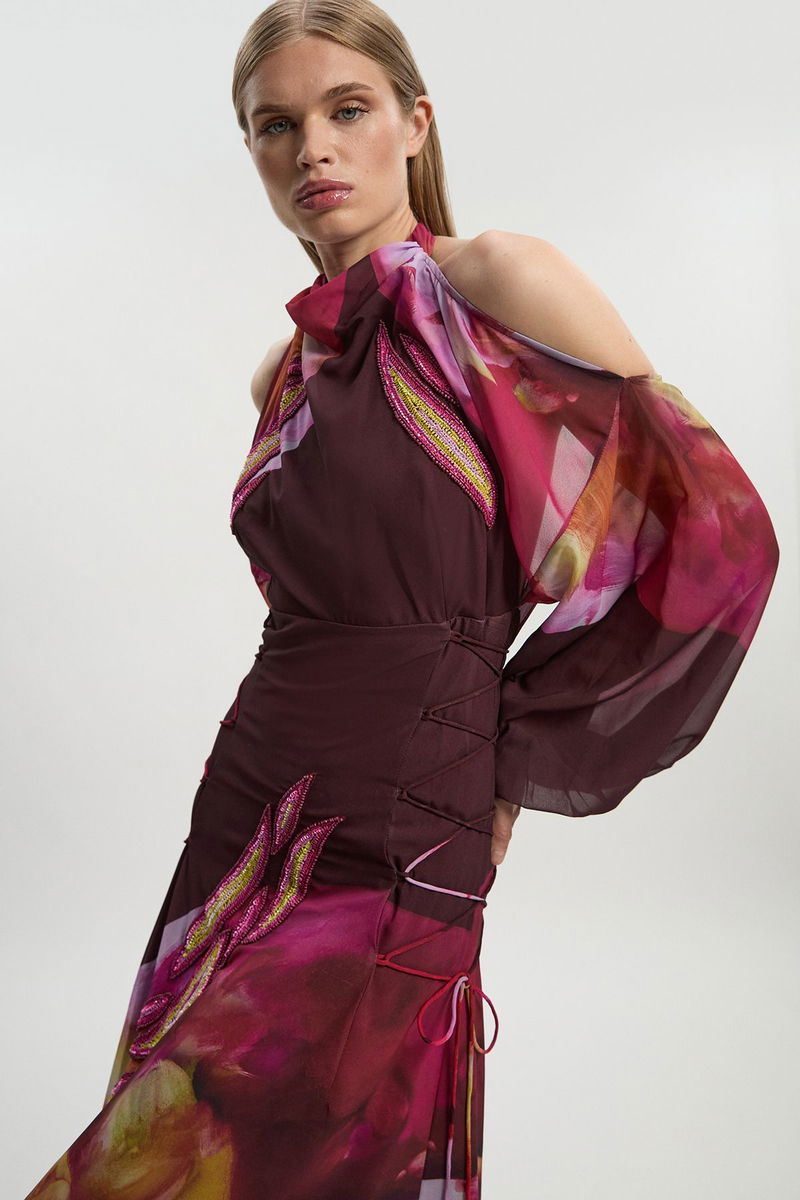Petite Lily Macrae Cold Shoulder Embellished Woven Maxi Dress