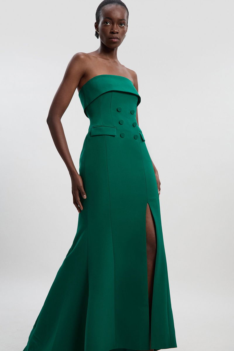 Petite Polished Tailored Bandeau Tux Maxi Dress