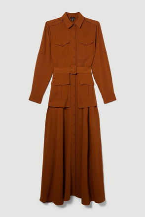 Make a statement in the office with this refined Karen Millen shirt dress. The tailored silhouette and maxi length create a polished look that's perfect for the professional setting. The vertical stripes elongate your figure, while the belted waist allows you to customise the fit to your liking. Style it with sleek court shoes and minimal jewellery for a boardroom-ready ensemble. For after-work drinks, simply undo a few buttons at the collar and swap your heels for stylish flats. This versatile piece transitions seamlessly from day to night, making it an essential addition to your workwear wardrobe.