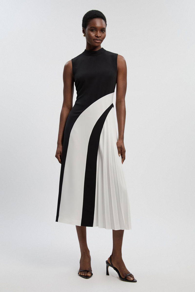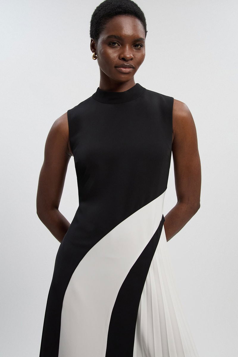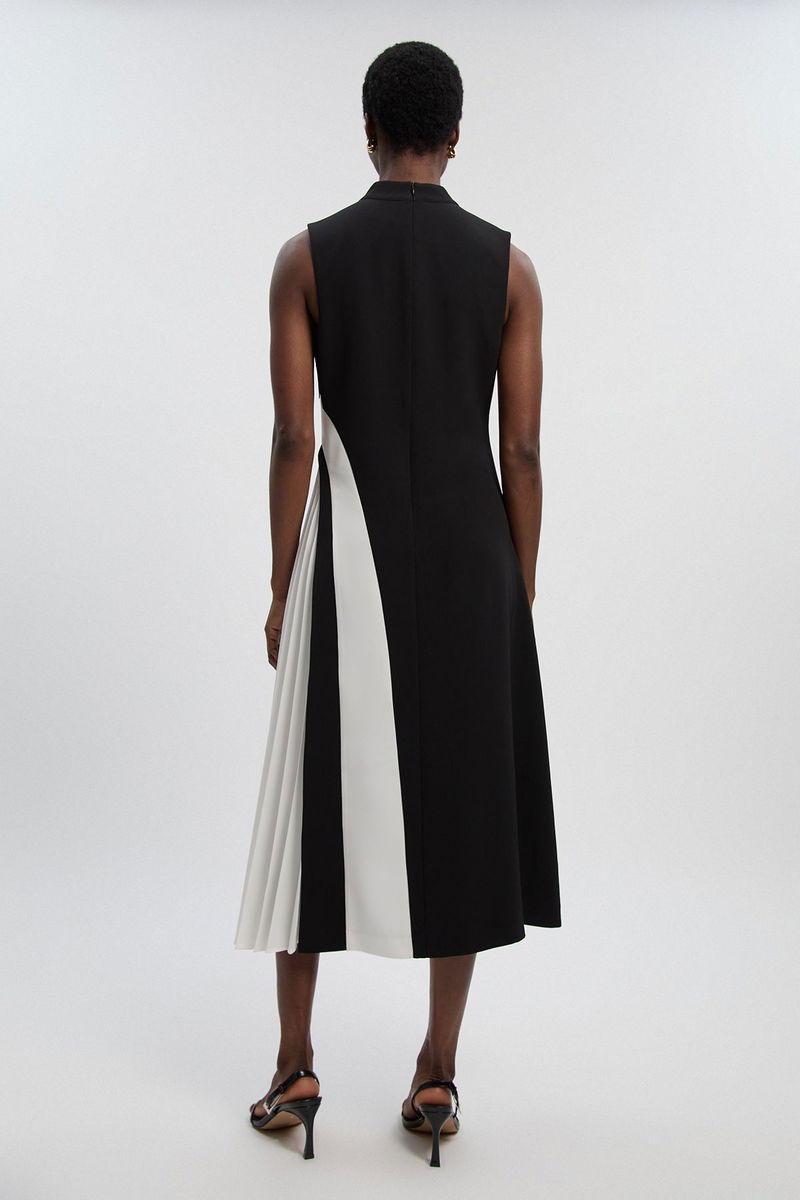 Petite Soft Tailored Colour Block High Neck Pleated Midi Dress