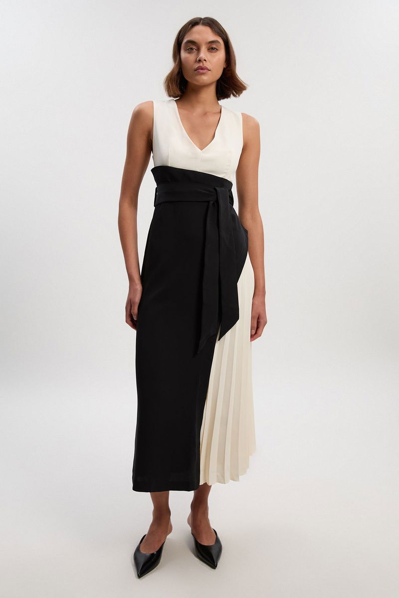 Petite Soft Tailored Colour Block Side Pleated Midi Dress