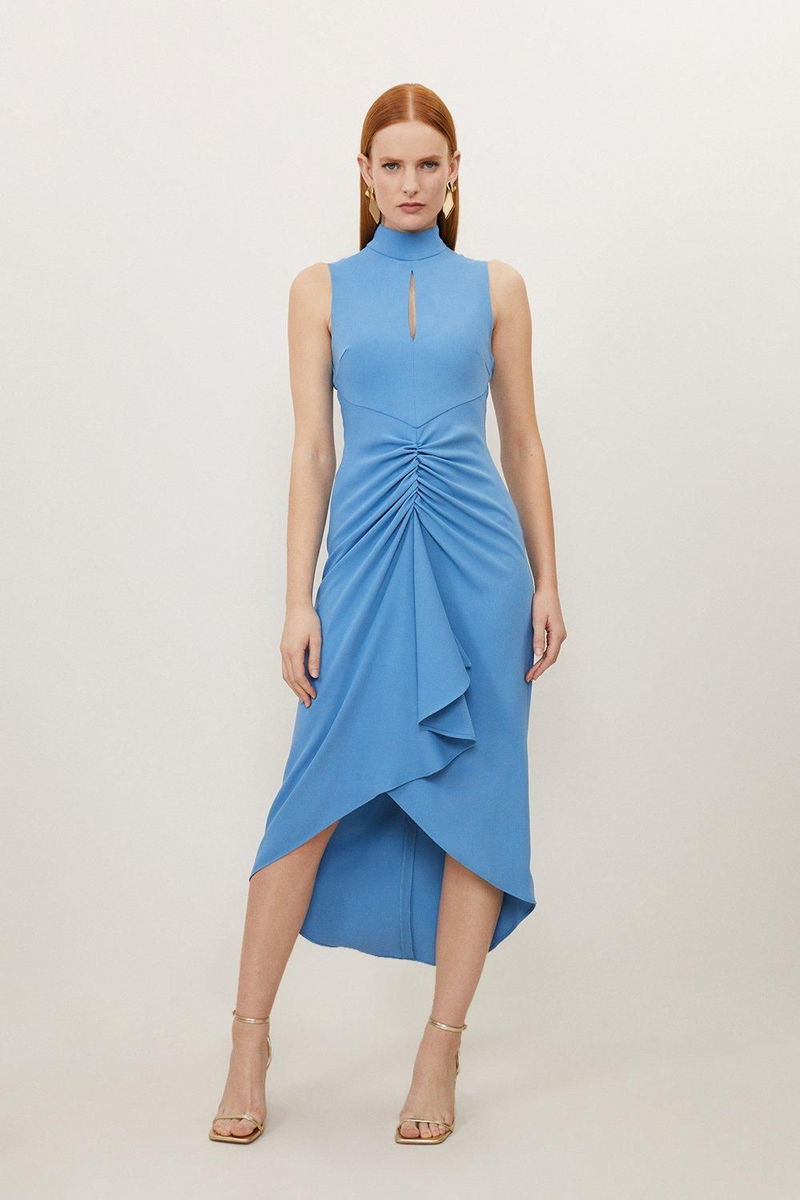 Petite Soft Tailored Ruched Front High Neck Midi Dress