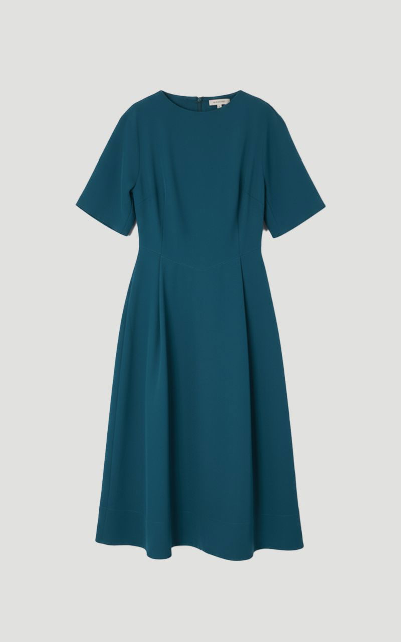 Petite Soft Tailored Trim Detail Full Skirt Midi Dress