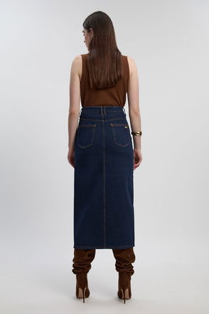 Petite Stretch Denim Snaffle Trim Midi Skirt.