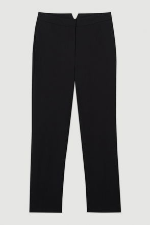 Boasting an array of timeless characteristics, the slim leg trousers are composed with unfaltering elegance. Crafted from our signature Compact Stretch jersey that contours the silhouette with unparalleled four-way stretch, they're tailored with a waist-defining high rise. Led by the inverted pleats that add dimension to its streamlined shape, they land at cropped hems, calling for a statement stiletto.