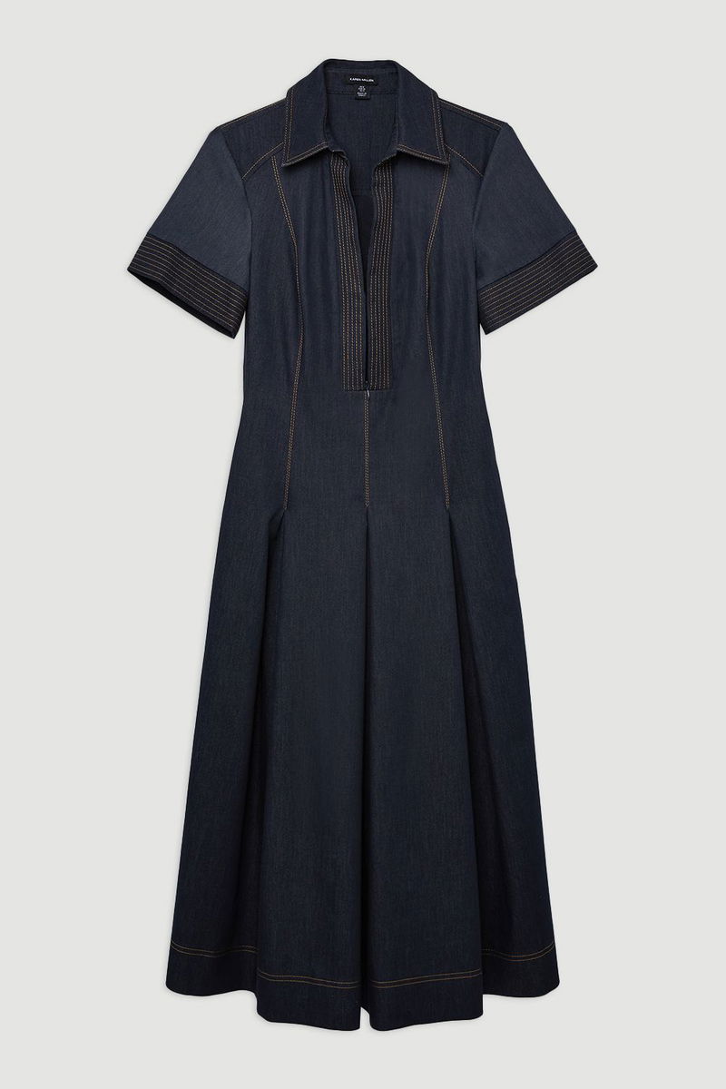 Petite Tailored Denim Full Skirted Midi Shirt Dress