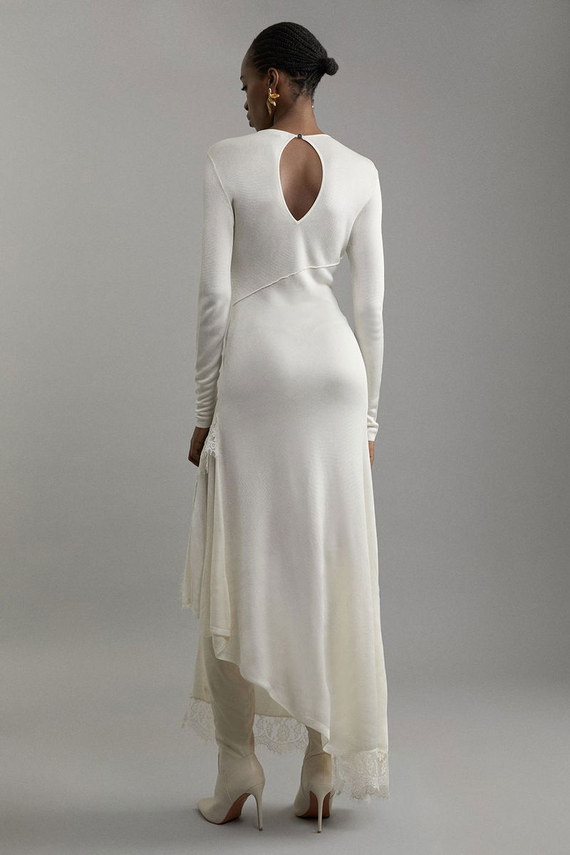 Petite Viscose Blend Slinky Sheer Lace Detail Asymmetric Knit Maxi Dress