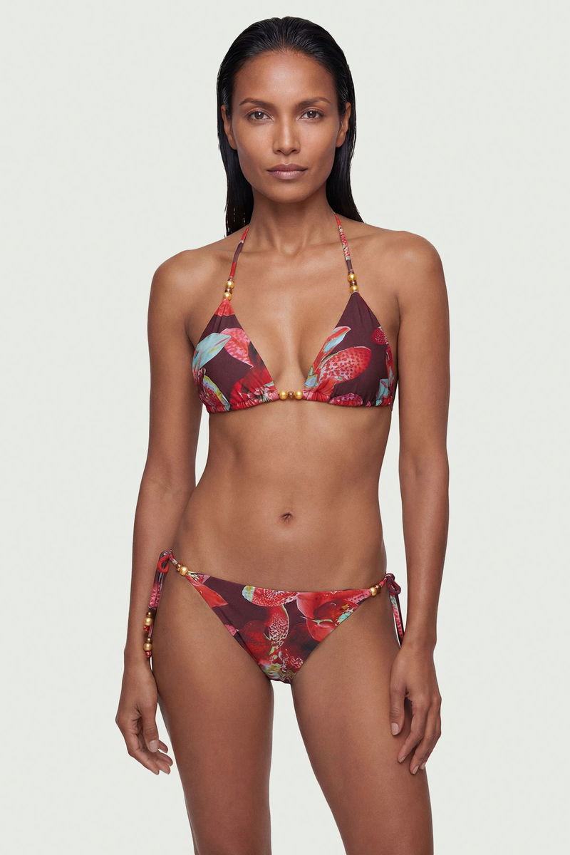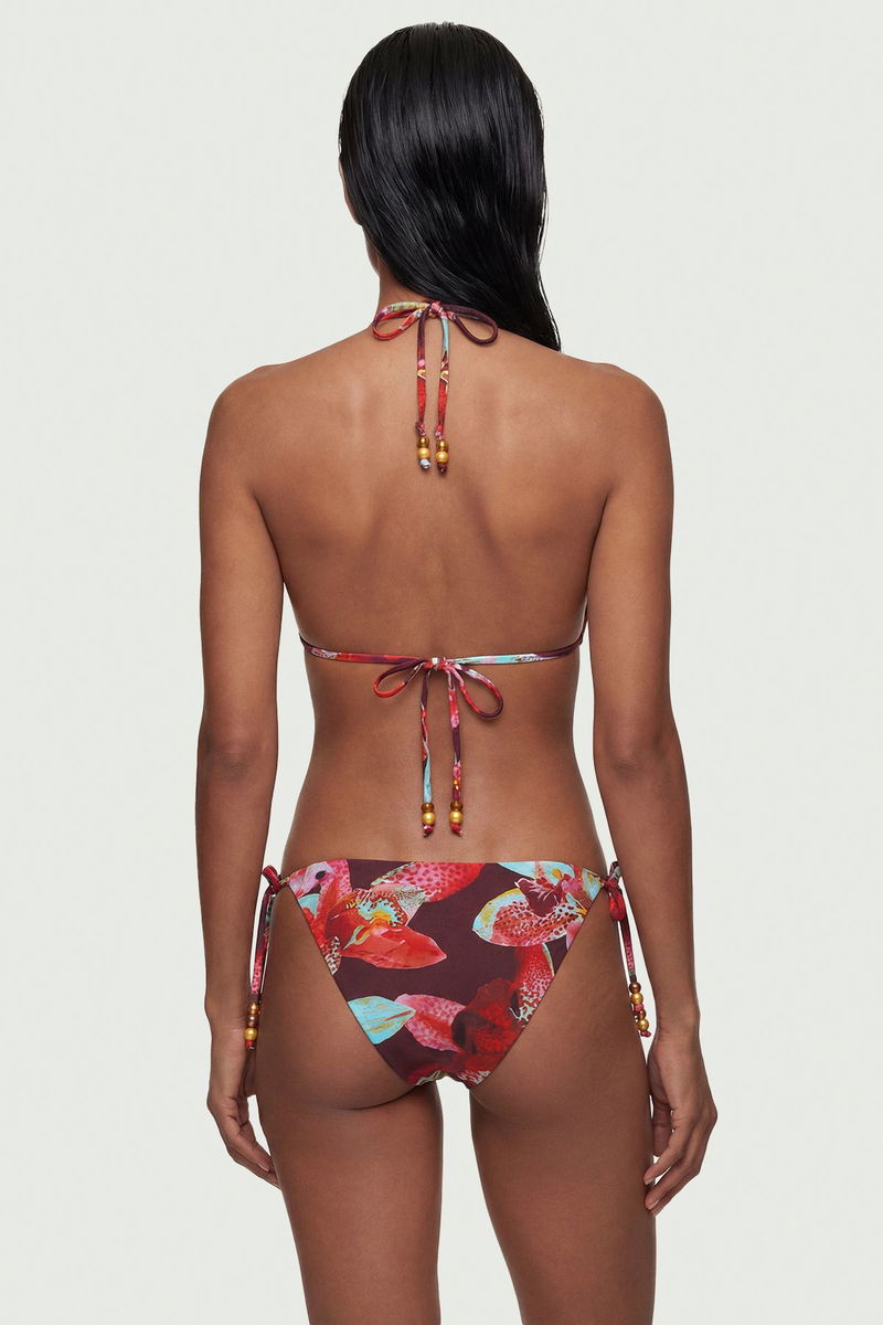 Photographic Floral Reversible Bikini Bottom With Bead Detail
