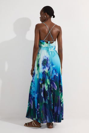 Pleated Floral Boddice Detail Woven Maxi Dress