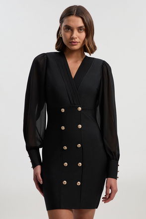 Feel elegant in this plus size mini dress, with a figure hugging silhouette, trim detailing, and contrasting metallic hardware. Style this dress with tiights and heels for an outfit that will turn heads from office days to upcoming occasions and events.